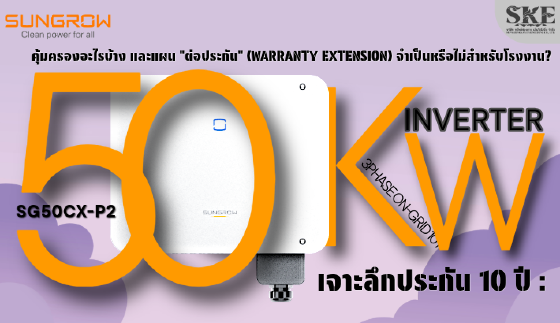 การลงทุนใน Solar Rooftop สำหรับโรงงานคือการตัดสินใจครั้งใหญ่ และ "การรับประกัน" ก็คือเกราะป้องกันที่สำคัญที่สุดของการลงทุนนั้น อินเวอร์เตอร์ Sungrow เกรดอุตสาหกรรมหลายรุ่นมาพร้อมการรับประกันมาตรฐาน 5 ปี แต่ก็มีตัวเลือกในการขยายเป็น 10 ปี หรือมากกว่านั้น บทความนี้ SKE จะมาเจาะลึกว่าความคุ้มครอง 10 ปีนั้นครอบคลุมอะไร และที่สำคัญคือ โรงงานของคุณ "ควร" ซื้อประกันเพิ่ม πέρα από την δεκαετία หรือไม่?