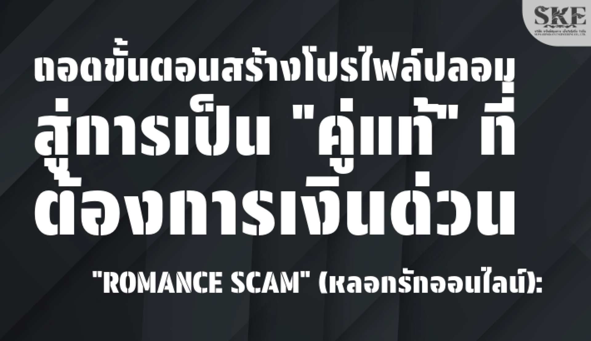 ในยุคที่ความรักสามารถเริ่มต้นได้เพียงปลายนิ้วคลิก โลกออนไลน์ได้เปิดประตูสู่โอกาส แต่ก็แฝงไว้ด้วยอันตรายจาก "นักล่า" ที่ใช้ความรักเป็นเครื่องมือ "Romance Scam" หรือ "กลโกงหลอกรักออนไลน์" คือภัยเงียบที่ทำลายชีวิตผู้คนมานับไม่ถ้วน มันไม่ใช่แค่การหลอกเอาเงิน แต่มันคือการทำลายความไว้วางใจและหัวใจ บทความนี้ SKE จะมา "ถอดบทละคร" ตั้งแต่ฉากแรกที่คนร้ายสร้างตัวตนปลอม สู่ฉากสุดท้ายที่เหยื่อสูญสิ้นทุกอย่าง