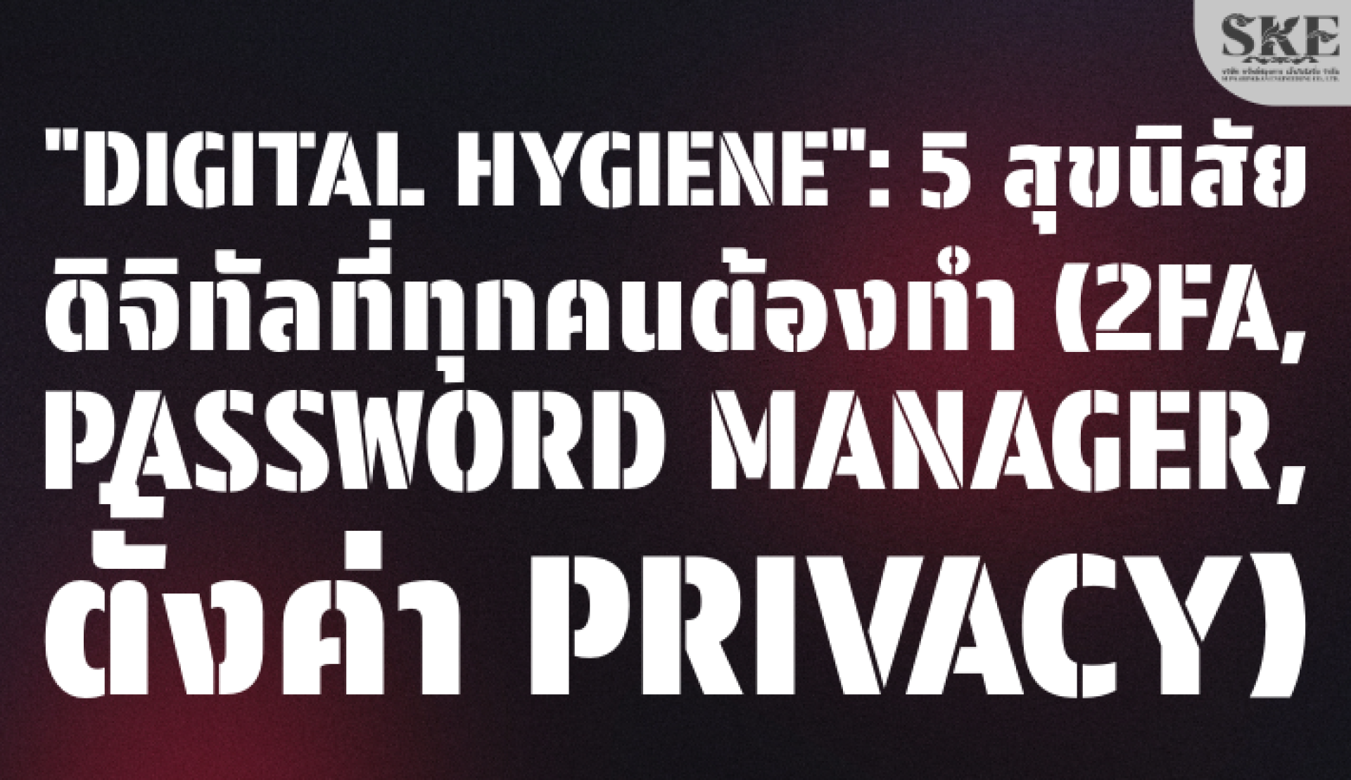 เราแปรงฟันทุกวันเพื่อป้องกันฟันผุ ล้างมือทุกครั้งเพื่อป้องกันเชื้อโรค... แล้วชีวิตในโลกดิจิทัลของคุณล่ะ? คุณมี "สุขอนามัย" ที่ดีพอหรือยัง? "Digital Hygiene" หรือ "สุขอนามัยดิจิทัล" คือชุดพฤติกรรมพื้นฐานที่ช่วยให้คุณปลอดภัยจาก Scammer, แฮกเกอร์, และมัลแวร์ บทความนี้ SKE ได้สรุป 5 สุขนิสัยที่สำคัญที่สุดและทำได้ง่ายๆ ที่จะเปลี่ยนคุณให้เป็นผู้ใช้อินเทอร์เน็ตที่แข็งแกร่งขึ้นทันที