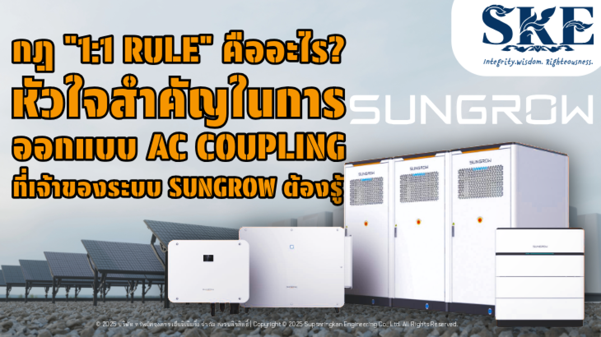 SKE Solar ในฐานะ **ตัวแทนจำหน่ายและติดตั้ง Sungrow อย่างเป็นทางการทั่วประเทศไทย** จะมา "วิเคราะห์" ความแตกต่างเหล่านี้ และ "แนวทางการออกแบบ" ที่จะทำให้ระบบ AC Coupling ของคุณ (ที่ใช้ Sungrow เป็นหัวใจ) ทำงานได้อย่าง "เสถียร" และ "ปลอดภัย" ที่สุด