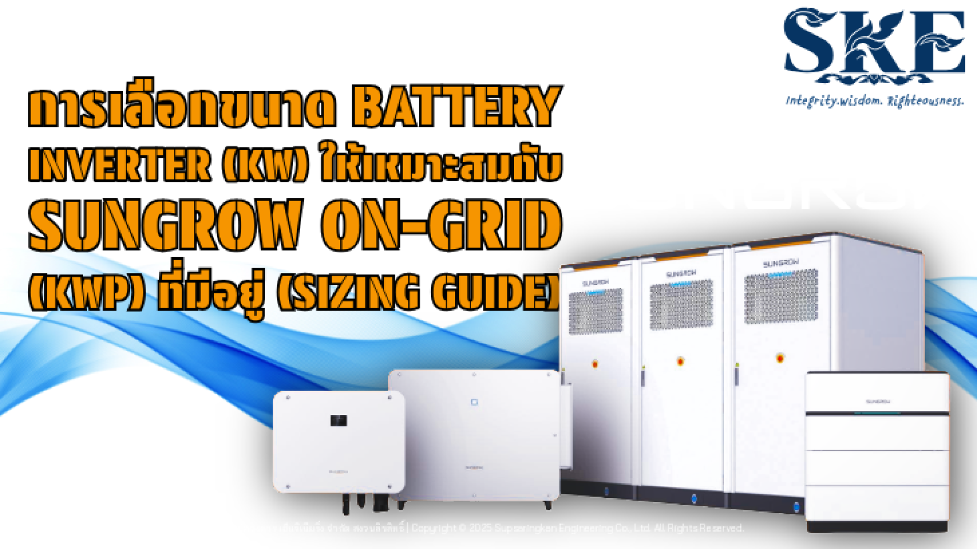 SKE Solar ในฐานะ **ตัวแทนจำหน่ายและติดตั้ง Sungrow อย่างเป็นทางการ** ขอนำเสนอ Sizing Guide เบื้องต้นสำหรับช่างเทคนิค เพื่อเป็นแนวทางในการเลือกขนาด Sungrow Hybrid Inverter (SH...RS/RT/T) ให้ทำงานร่วมกับ Sungrow On-Grid เดิมได้อย่างถูกต้อง
