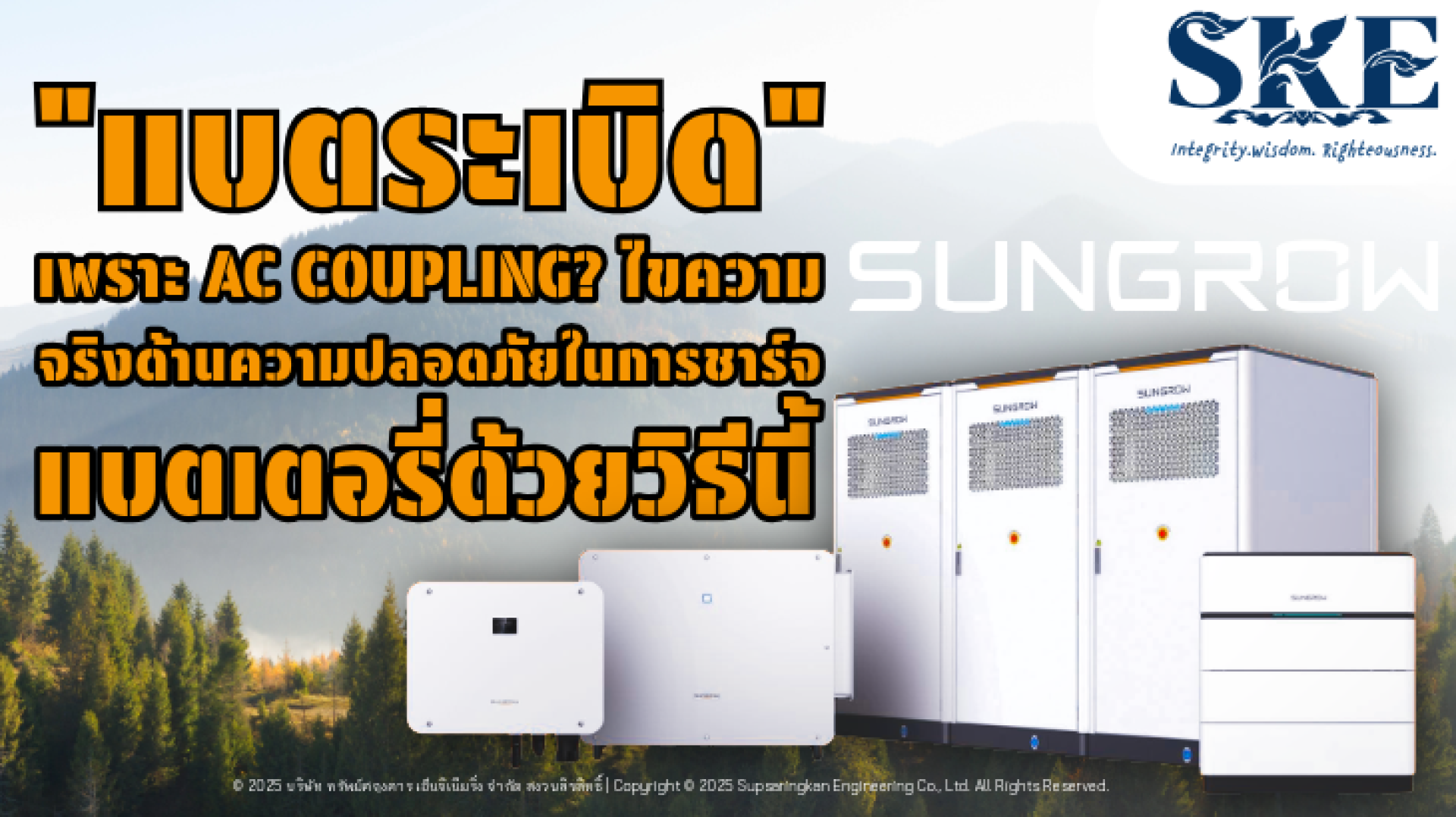 SKE Solar ในฐานะ **ตัวแทนจำหน่ายและติดตั้ง Sungrow อย่างเป็นทางการ** ขอ "ไขความจริง" และยืนยันว่า: **กระบวนการ AC Coupling ที่ออกแบบและติดตั้งอย่างถูกต้อง โดยใช้อุปกรณ์มาตรฐาน ไม่ใช่สาเหตุโดยตรงของการระเบิดของแบตเตอรี่**
