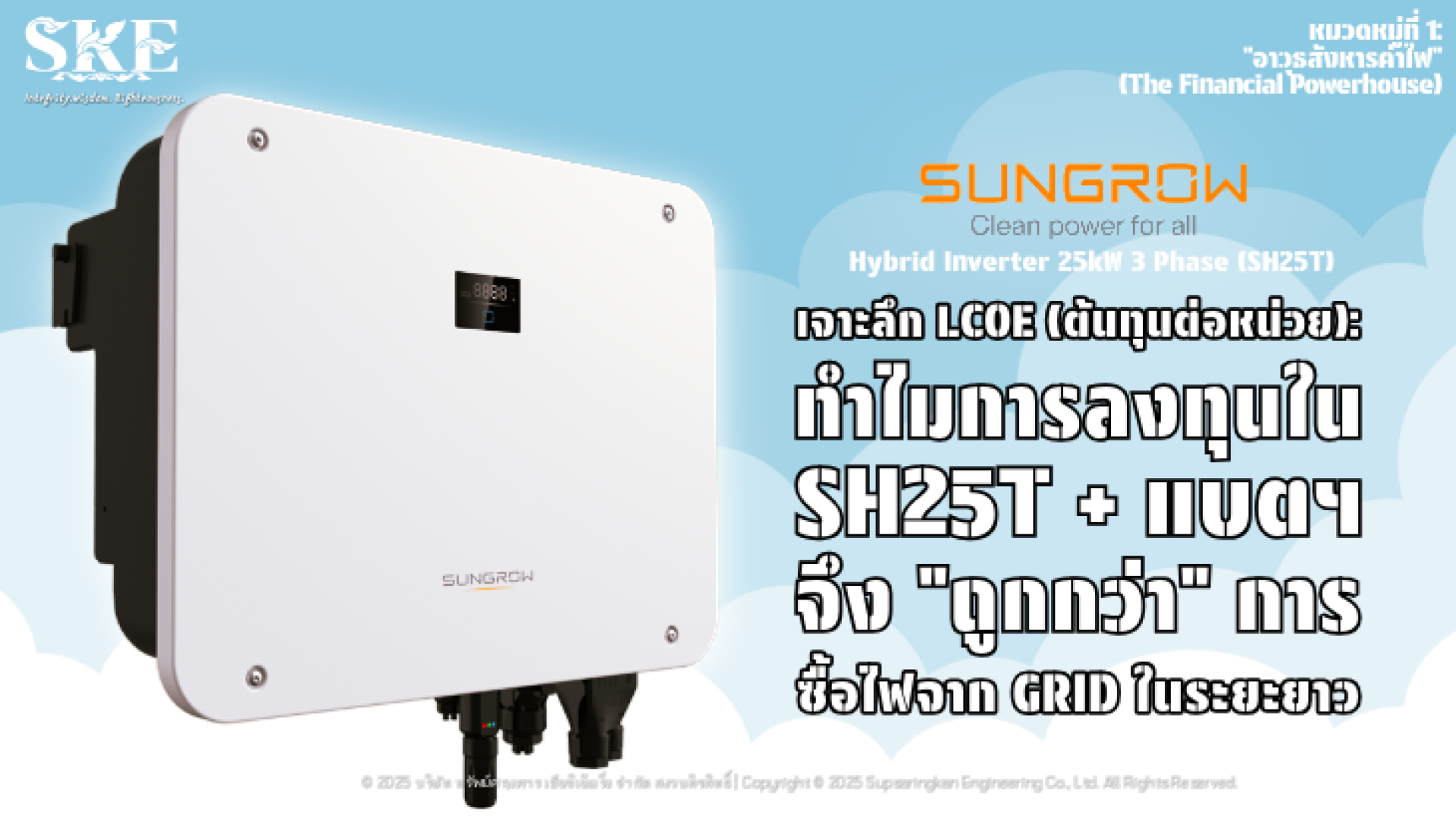 เจาะลึก LCOE: ทำไม SH25T + แบตฯ "ถูกกว่า" ซื้อไฟจาก Grid ระยะยาว | SKE