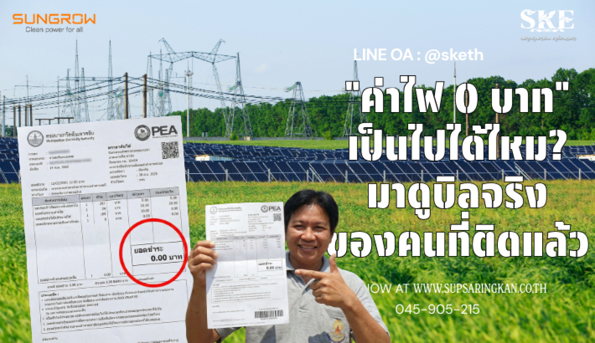 "ค่าไฟ 0 บาท" เป็นไปได้จริงหรือขายฝัน? เปิดหลักฐานจากบิลจริงและวิธีทำได้จริง | SKE Solar