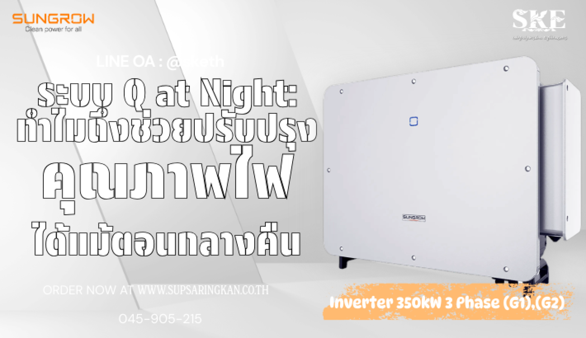 ระบบ Q at Night: ทำไม Sungrow 350kW ถึงช่วยปรับปรุงคุณภาพไฟได้แม้ตอนกลางคืน | SKE
