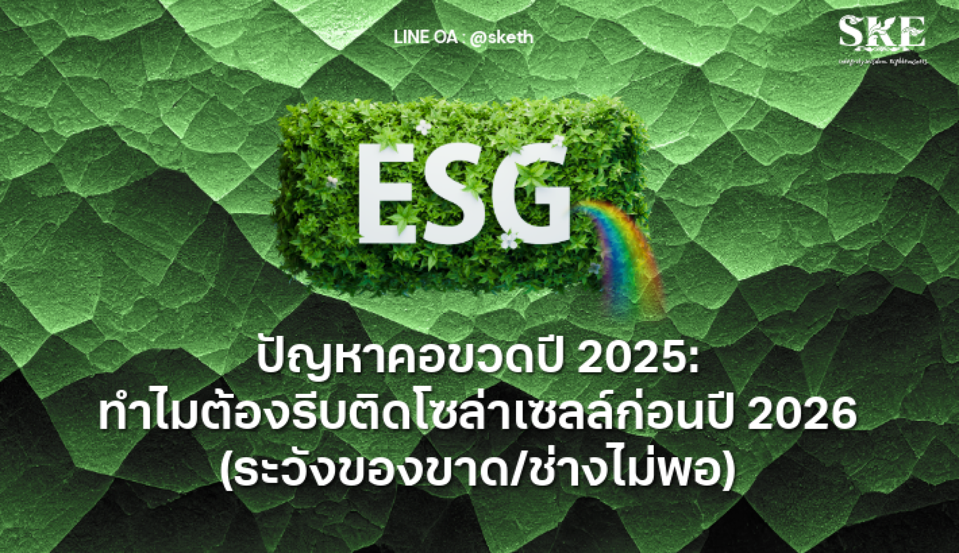อย่ารอให้ถึงวันที่ "มีเงินก็ซื้อไม่ได้" ติดต่อ SKE Solar เพื่อจองคิวติดตั้งด่วน