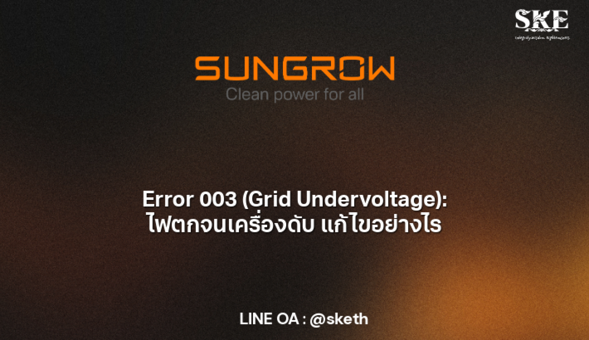 Sungrow Error 003/004 (Grid Undervoltage): แก้ปัญหา "ไฟตก" จนเครื่องดับ | SKE Solar