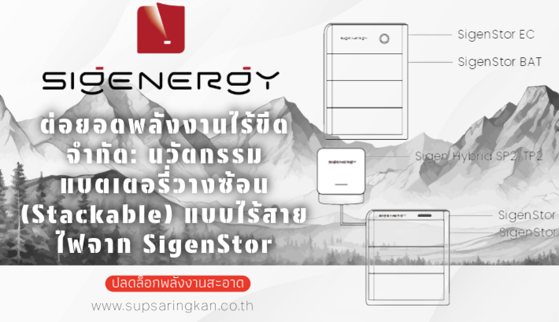 นวัตกรรมแบตเตอรี่วางซ้อน SigenStor แบบไร้สายไฟ (Stackable)